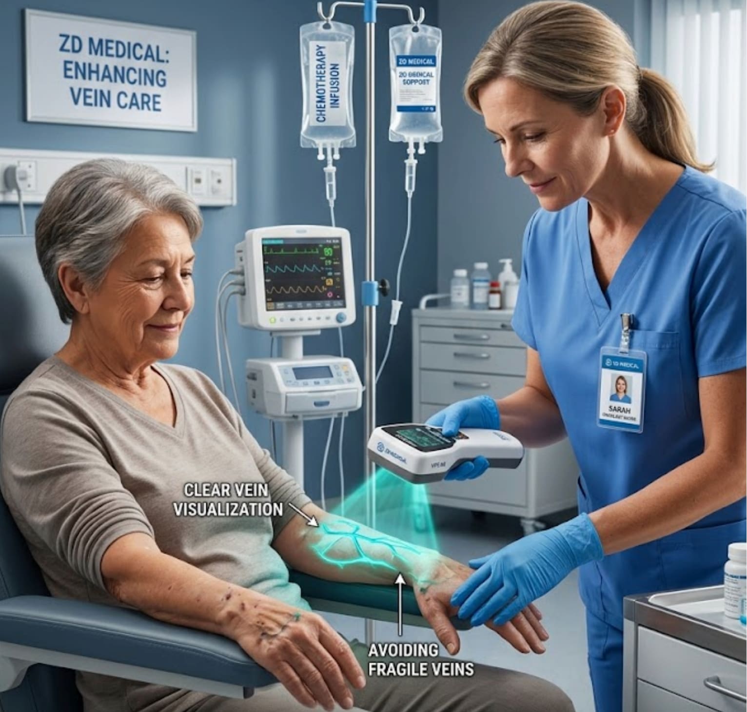 Protecting limited venous resources: Chemotherapy patients usually require long-term treatment, and every available vein is extremely precious. Using the imaging device to reduce the number of puncture failures can maximize the avoidance of vein damage and extend the lifespan of the patient's venous vessels, preserving the access for subsequent treatments.
